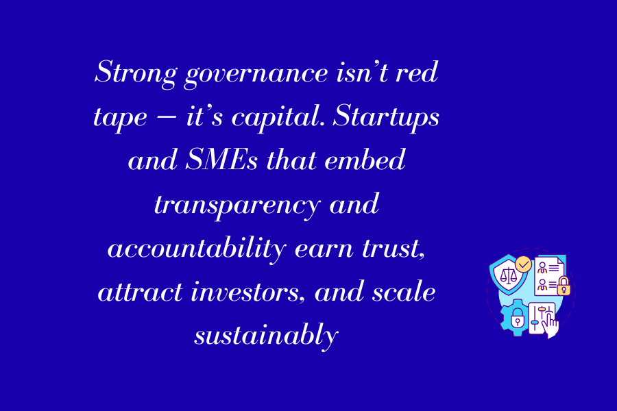 If startups and SMEs see governance as a dividend — not a tax — they will attract capital at better valuations, scale more sustainably, and inspire confidence in global markets.